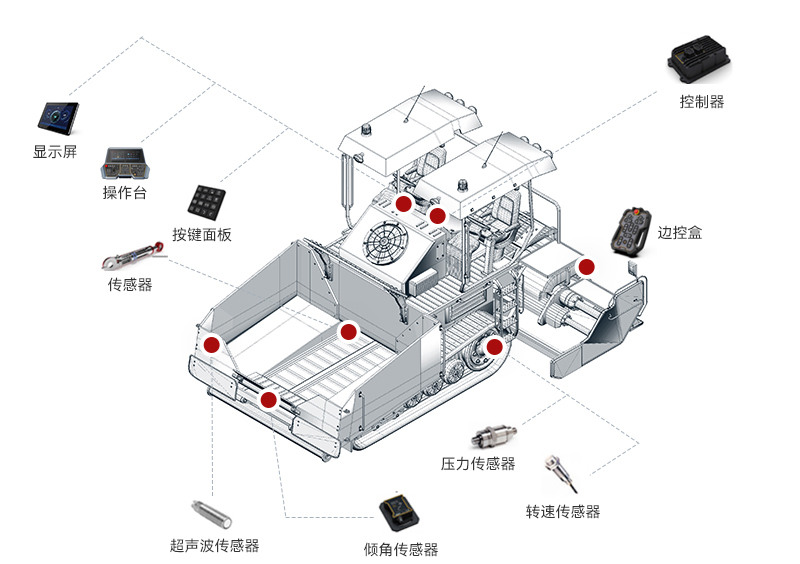 YABO鸭脖智能摊铺机解决方案整合了感知技术、自动控制系统和数据分析算法,实现了摊铺机高度智能化操作。通过实时获取路面信息和实时调整施工参数,使摊铺机操作更加精准、高效和可靠。